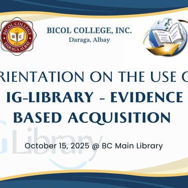 An overwhelming number of attendees joined this year's orientation on one of our subscribed e-resources - the IG-Library by Libtech Source Philippines Inc. The Library Department extends its heartfelt appreciation to all students and faculty for their active participation during the session.