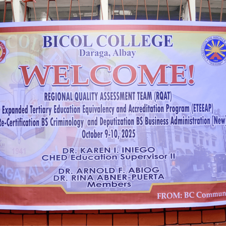 Bicol College expresses its gratitude to the CHED RQAT team for their time and guidance, and to the faculty and staff for their support and dedication throughout the evaluation process.